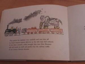 So this is a bit of an oddity! A joyous oddity, but still an oddity nonetheless. It reminded me visually of Spike Milligan’s Badjelly the Witch: A Fairy Story, there’s a similar sort of style in the characters but Wells’ have a certain whimsy about them as opposed to Milligan’s exuberant bold strokes. There’s an almost tentative sense to some of the images; scale shifting and colours washing the edges of the outlines in one image, and colouring the whole of the image in the next. It feels like a quite tentative exercise at points and at others, a sort of gung-ho affair.