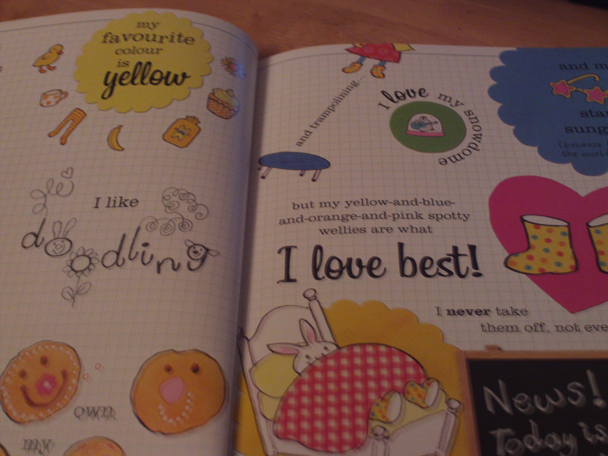 The next double page spread (3) is the moment that I know this book has got me. And it’s a very specific moment. It’s in this little section (4), right by the spine, where Martha says that she likes doodling, and the way the typography slides, very gloriously right through to the ‘background’ of the page, and the doodles spin off into the page. I love books that acknowledge their form, that connect the front image with the back, and acknowledge the glorious potential of these layers of image.