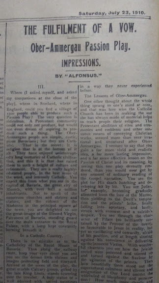 I found some rather brilliant reports of the Oberammagau Passion Play and thought instantly of The Chalet School and Jo. I was particularly enamoured to find mention of some of the characters that Brent-Dyer herself references. Here they are. The Wearside Catholic News was a weekly paper and these are all from July 1910. I hope the photographs are legible!