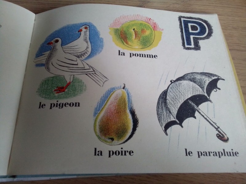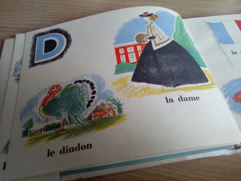 I recently came across a copy of this in town and I knew, quite simply, that I had to have it. Published in the 40s (?) by Faber and Faber, A French Alphabet is by Margaret Cardew and does pretty much what it says on the tin. And yet, and yet, the style that’s here. That usine yellow! That juxtaposition of dame / dindon! The aesthetics of the ballon ! I had to grab a copy and equally, I had to share it with you all. Please do join me in fangirling over this ridiculously wonderful thing. I might have to start a new collection of vintage alphabet books on the strength of it.