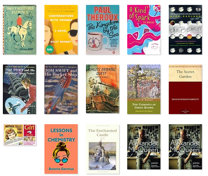 In terms of the best covers of the year, my heart is absolutely with the Tom Swift books and I would like these as posters because I would buy all of them. The Angela Brazil reprints proved delightful things (particularly when we hit the sixties and everybody gets a beehive and a miniskirt) and the Noel Streatfeild cover to Gemma also proved to be a similar joy. In terms of more modern material, the cover of Bird Boy by Catherine Bruton is a cracker as is the cover of Lessons In Chemistry by Bonnie Garmus. I do always think that we should have more merchandise with covers on. Penguin is very good on this with their iconic book cover bags but I do think sometimes that the other publishers are missing a trick here.